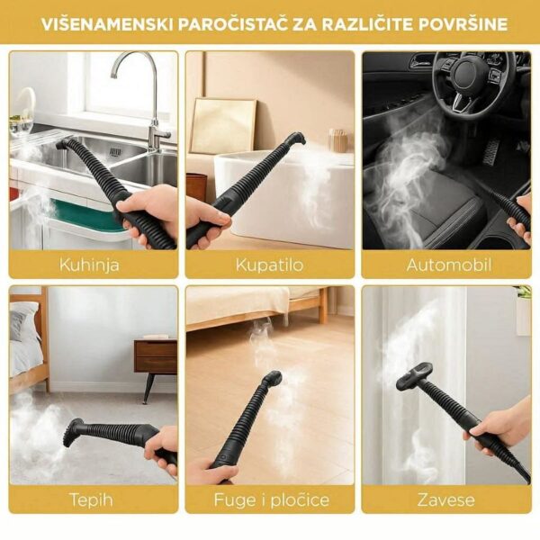 Snažan paročistač koji koristi vruću paru za uklanjanje prljavštine, masnoće i kamenca bez upotrebe hemikalija. Idealan za brzo i efikasno čišćenje različitih površina u domu.